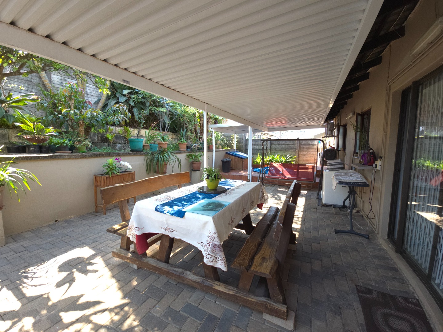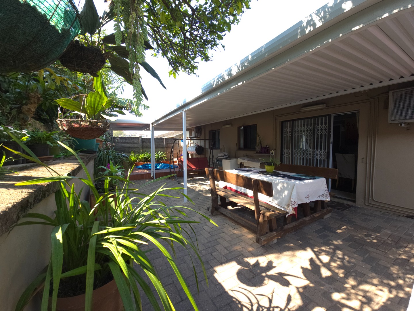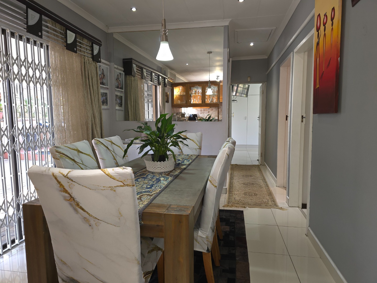 Discover this lovely family home nestled in Malvern, Queensburgh. You'll immediately notice the inviting kerb appeal with its well-maintained front lawn, established garden, and a welcoming paved walkway. Charming traditional wooden-framed windows, including a bay window, add character, while mature palm trees enhance the pleasant South African climate. It truly feels like home from the moment you arrive.