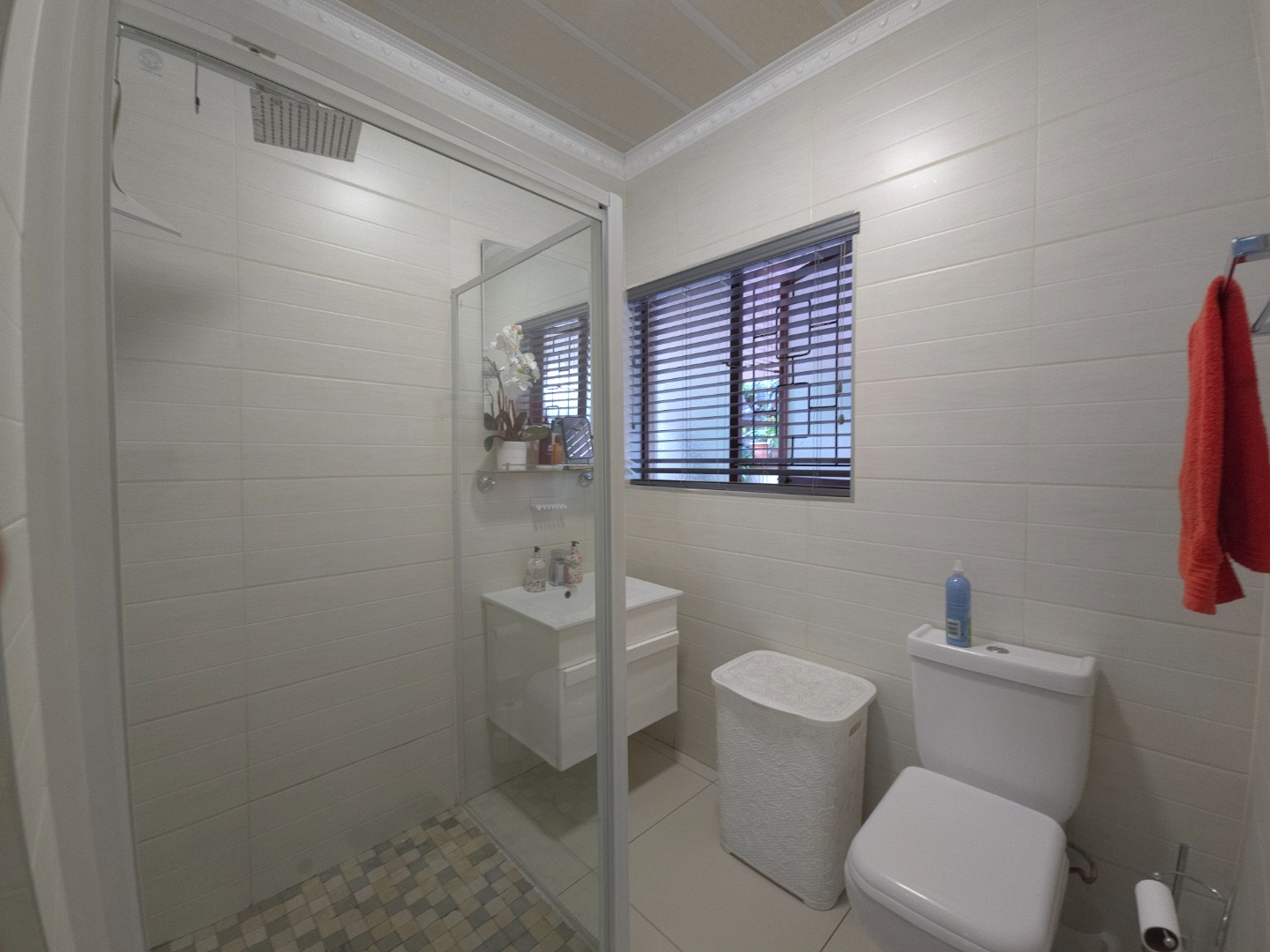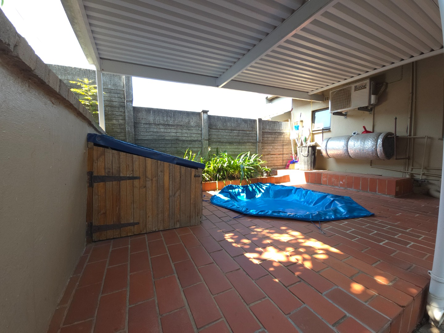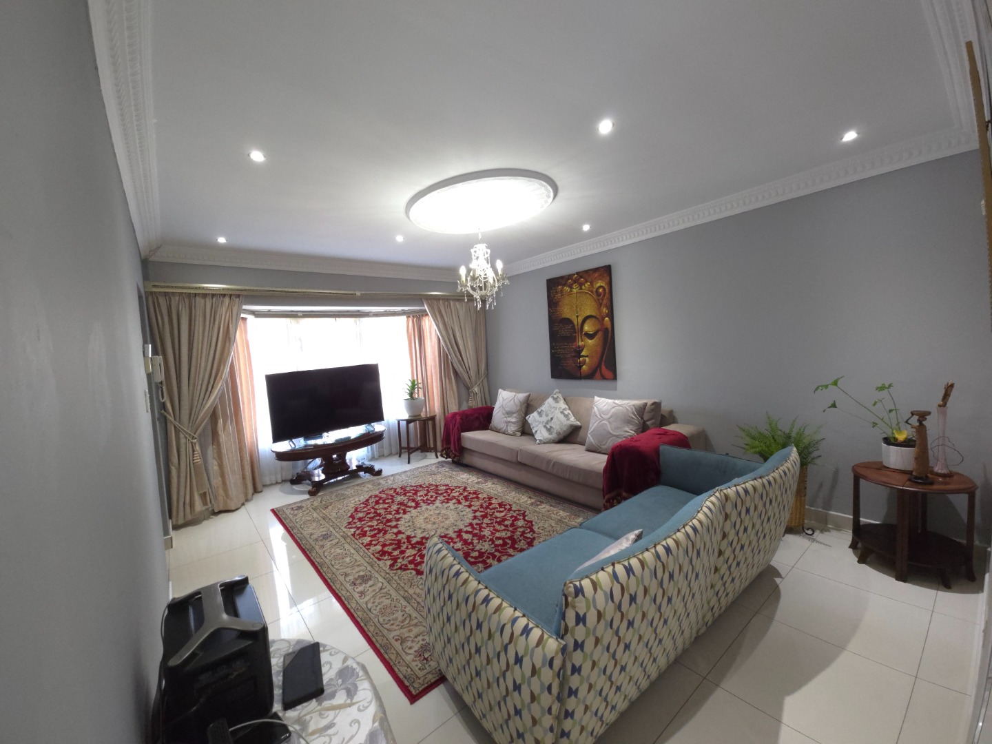 Discover this lovely family home nestled in Malvern, Queensburgh. You'll immediately notice the inviting kerb appeal with its well-maintained front lawn, established garden, and a welcoming paved walkway. Charming traditional wooden-framed windows, including a bay window, add character, while mature palm trees enhance the pleasant South African climate. It truly feels like home from the moment you arrive.