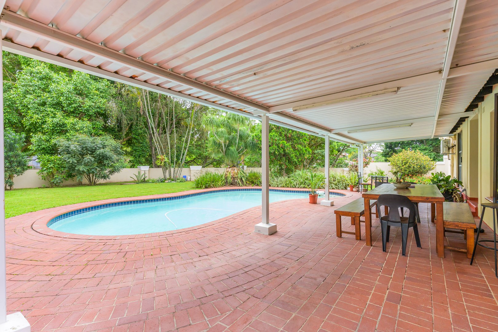 To round off this beautiful property is a sparkling pool with greenery to compliment the pool. Enjoy a morning or evening swim? Look no further or imagine spending time with family and friends around this pool while the kids have enough yard space to run around and enjoy themselves.
