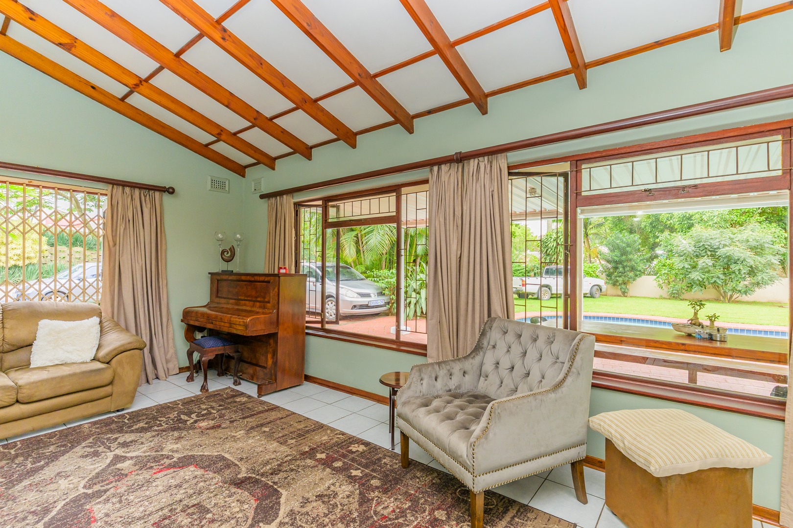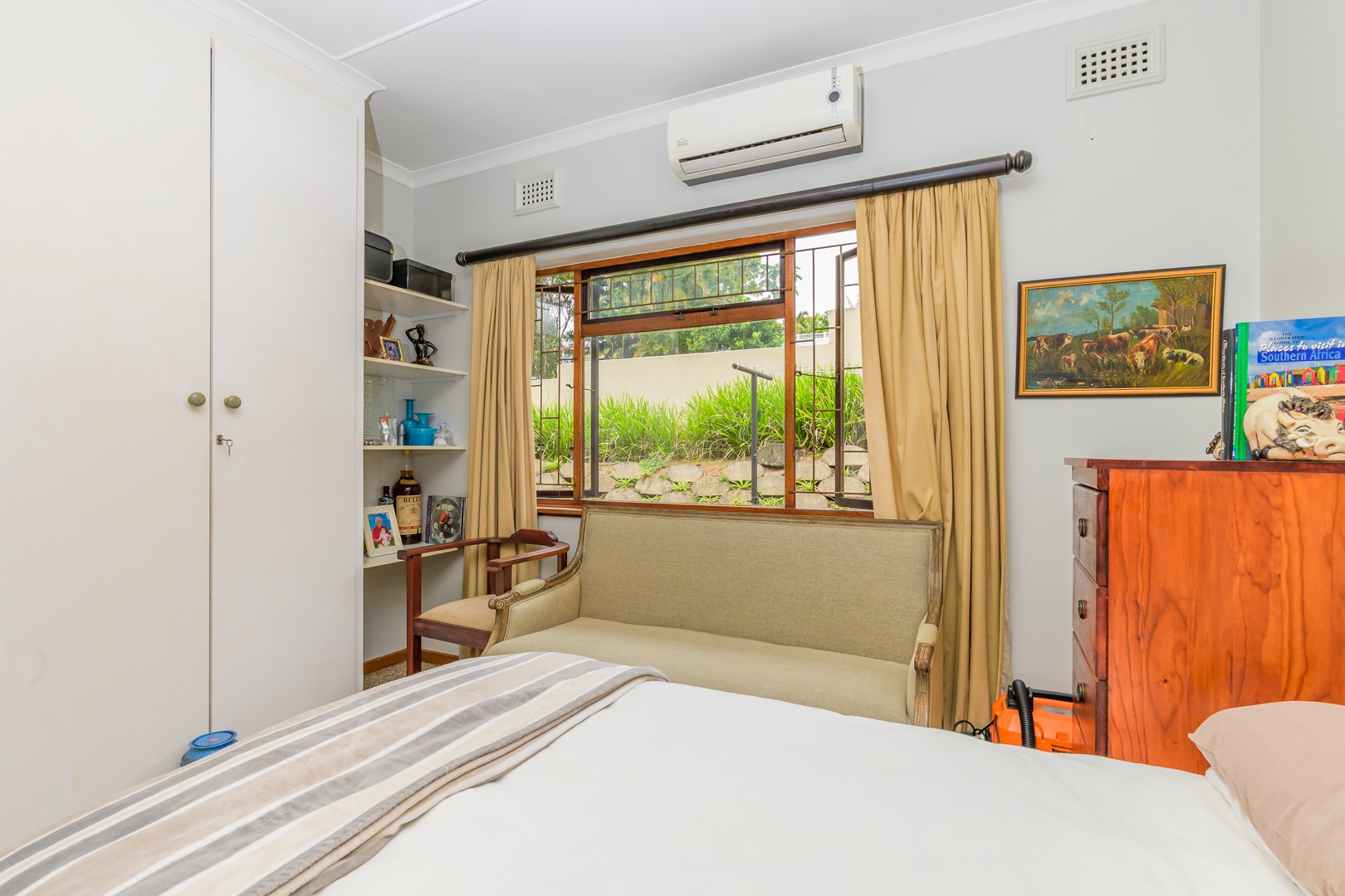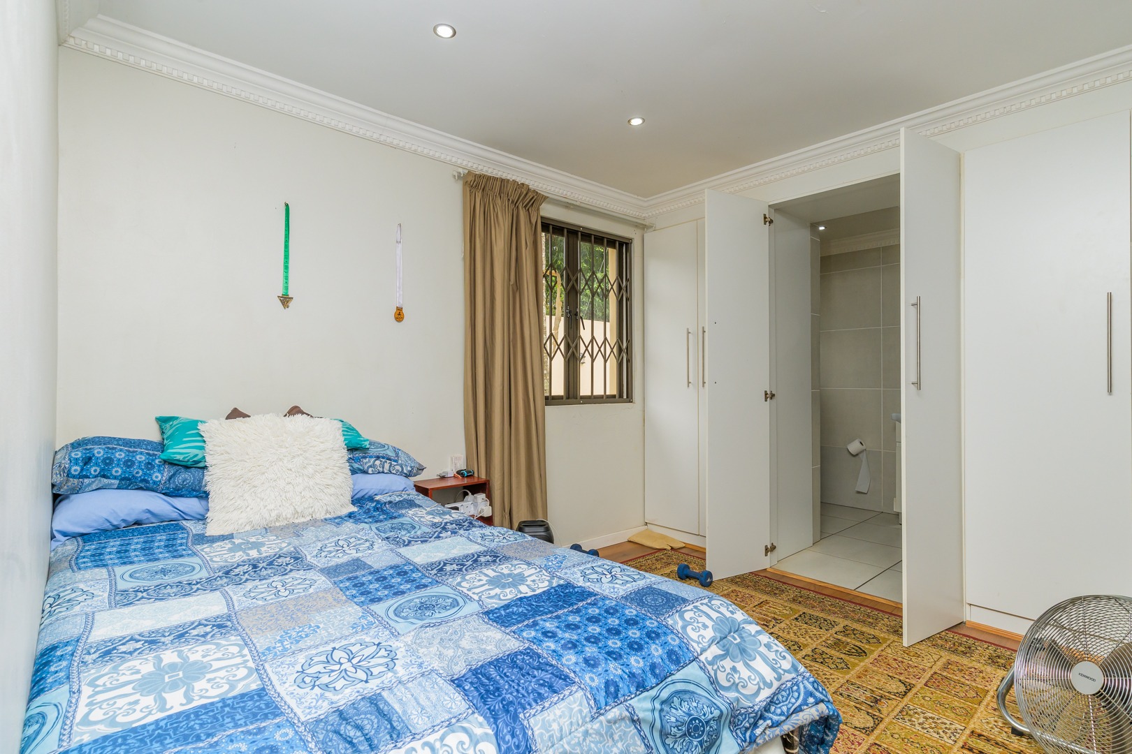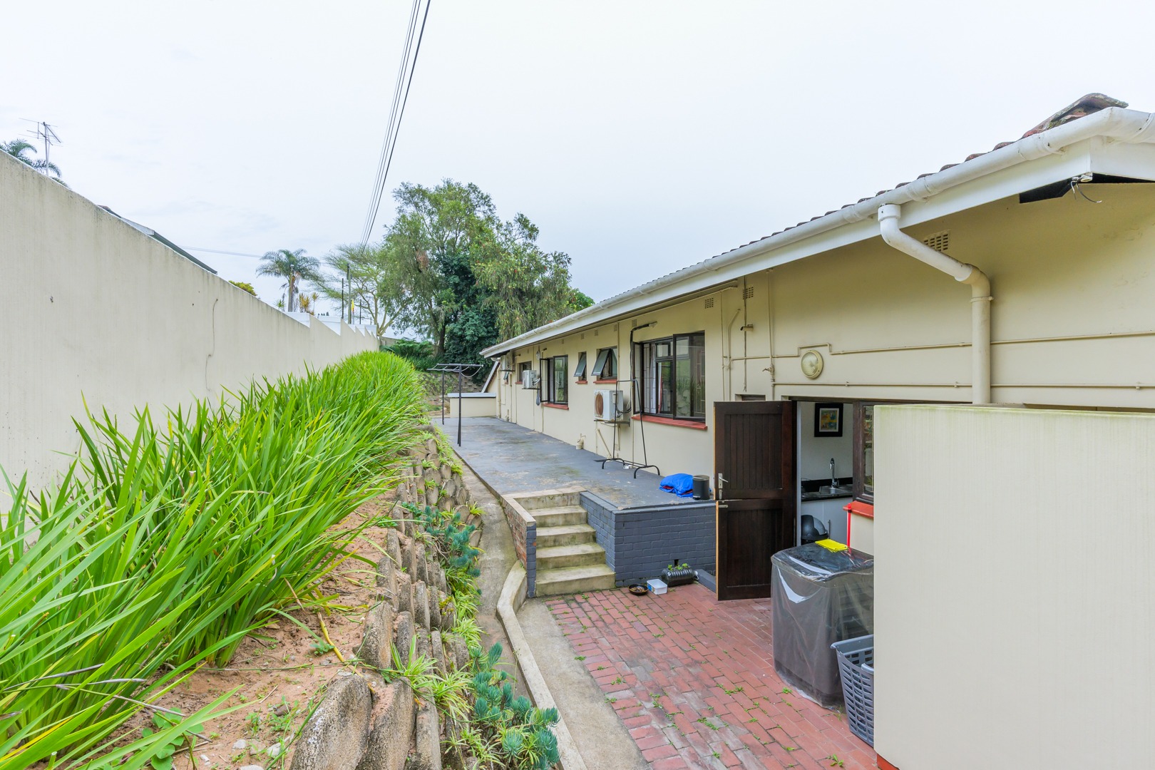 Added to this is an air conditioned flatlet consisting of a kitchen with built in cupboards and downlights, a lounge and a bedroom with an en suite. It can easily be accessed to be a fourth bedroom, a second lounge and a second kitchen by simply opening up a door.