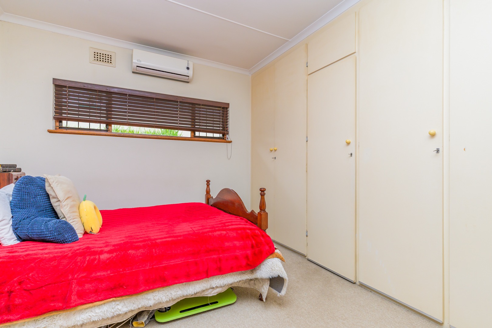 This beautiful home consists of 3 bedrooms (the main bedroom has an en suite) all with built in cupboards and the floors are carpeted, kitchen with built in cupboards and a hob, lounge, separate bathroom and toilet and air conditioners throughout the house. Love high ceilings? This house has it.