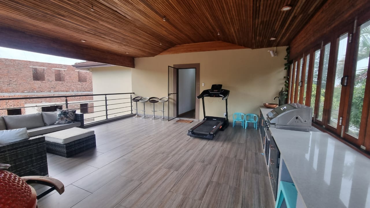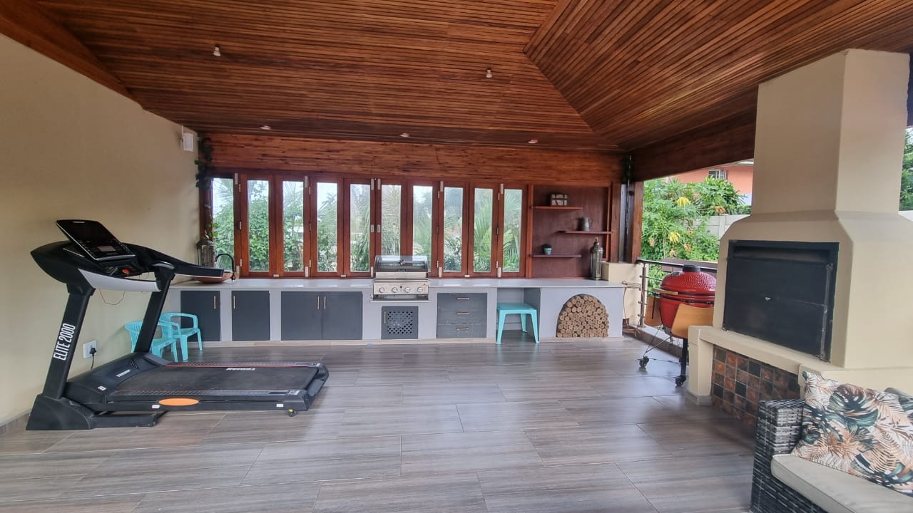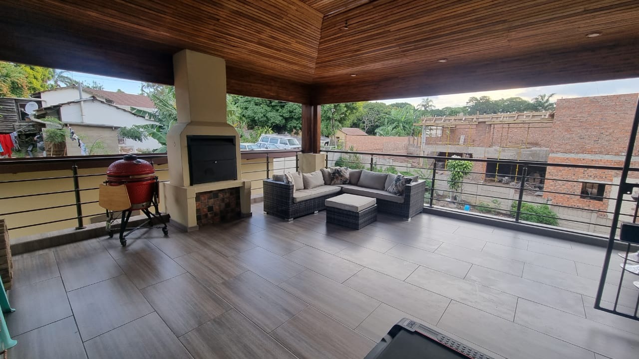 As you ascend up the stylish staircase , you will be greeted by an wide open area that leads out to the back entertainment veranda. Entertain in style on the expansive balcony featuring a braai area and an outdoor gym for the fitness enthusiast. Enjoy the wide expansive veranda with stack up windows that flood the space with natural light.