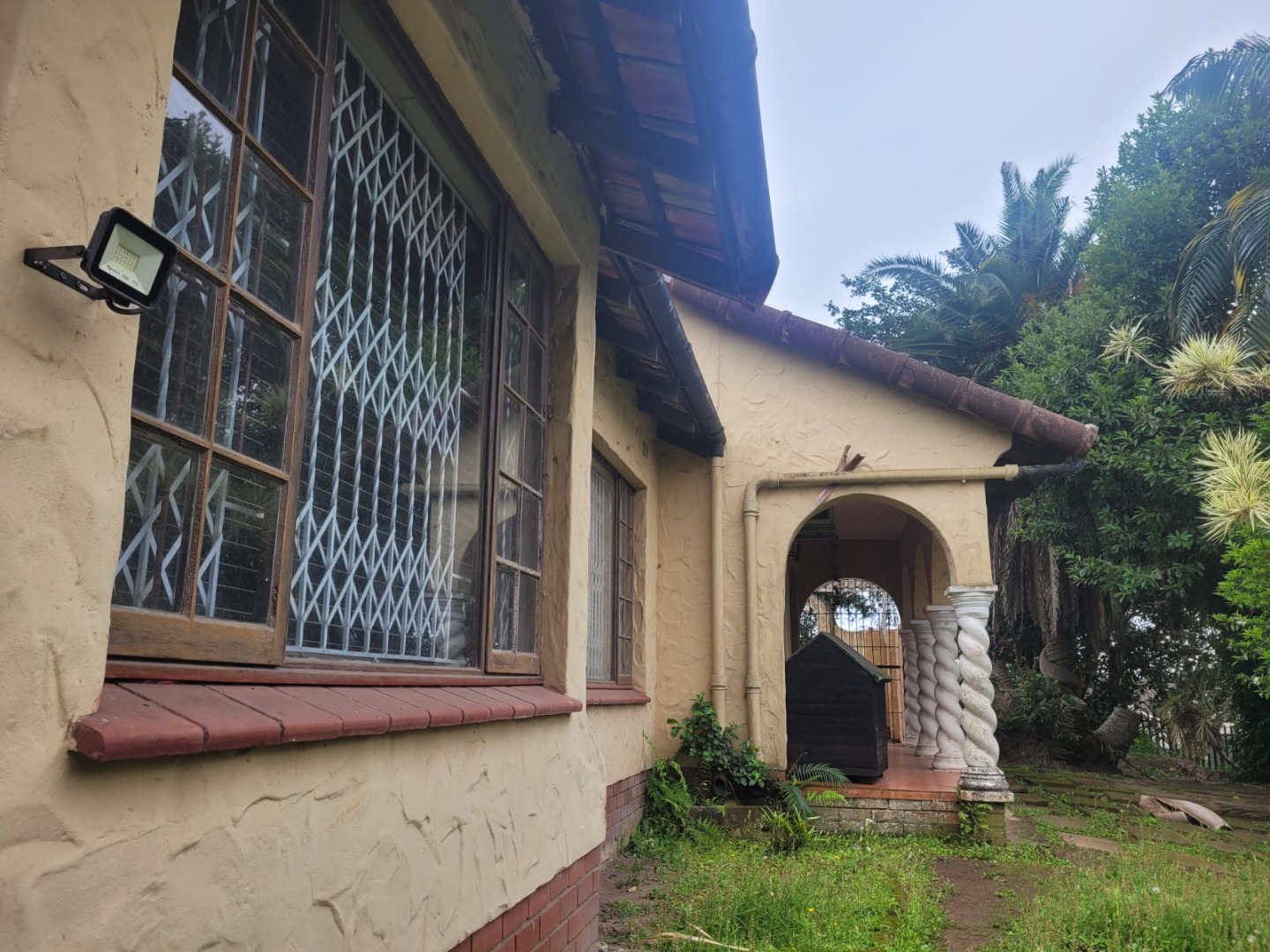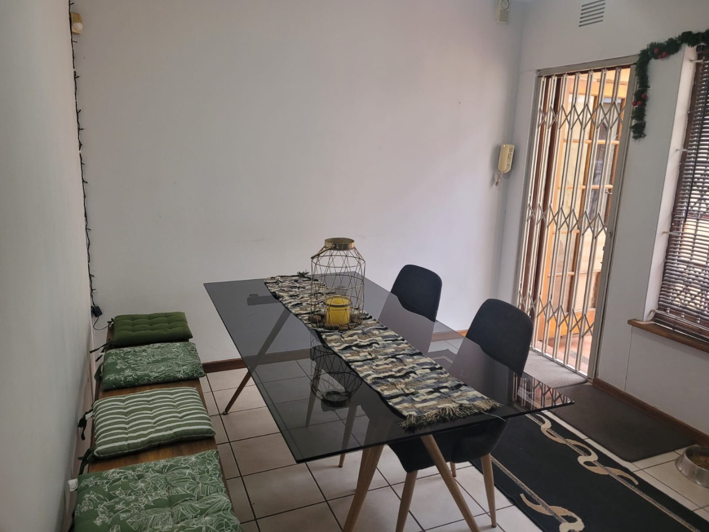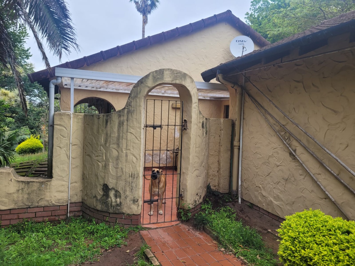 Discover this inviting 3-bedroom, 2-bathroom residence nestled in the established Queensburgh suburb of Northdene. Boasting a generous 1000 sqm erf, this property offers a blend of comfortable living and outdoor appeal. The charming covered front porch, featuring unique arched openings and decorative twisted columns, provides a welcoming entrance and enhances the home's kerb appeal. Mature trees and lush greenery frame the property, creating a serene and private atmosphere. Step inside to an interior designed for practical living. The home features an open layout with tiled flooring throughout, ensuring durability and easy maintenance. Architectural character is evident in the arched doorways, connecting various living spaces seamlessly. The lounge area is equipped with air conditioning for comfort and showcases a modern wood-paneled accent wall, providing a warm and inviting ambiance. An additional living space boasts a stylish stone-cladded accent wall, perfect for an entertainment setup. The functional kitchen offers ample counter space, a double sink, and includes an integrated hob and built-in oven, catering to everyday culinary needs. Cream-colored cabinetry and tiled surfaces ensure practicality. Adjacent to the kitchen, the dining area provides a comfortable space for meals, featuring a modern dining table and seating. The three well-proportioned bedrooms are complemented by two bathrooms, one of which is an ensuite, offering convenience and privacy. Outside, the property truly shines with its verdant garden, complete with mature trees, manicured shrubs, and a grassy lawn, ideal for relaxation or family activities. The presence of staff quarters and a flatlet offers versatile options for extended family or potential rental income. Security is enhanced by an access gate and security gates on windows, providing peace of mind. With a double garage and a driveway, parking is ample. Pets are welcome, making this a perfect family home. Located in Northdene, Queensburgh, this property offers suburban tranquility with convenient access to local amenities and transport routes. Key Features: * 3 Bedrooms, 2 Bathrooms (1 En-suite) * 1 Lounge, 1 Dining Room * Double Garage * 1000 sqm Erf Size * Charming Arched Porch * Air Conditioning * Staff Quarters * Flatlet Potential * Access Gate & Security Gates * Pet-Friendly Garden