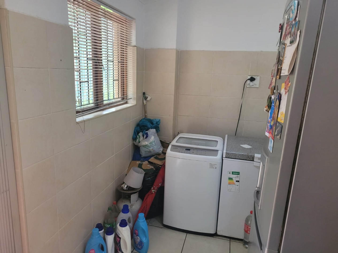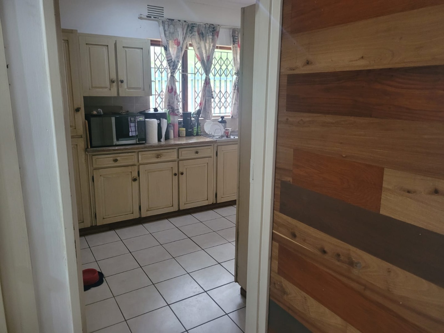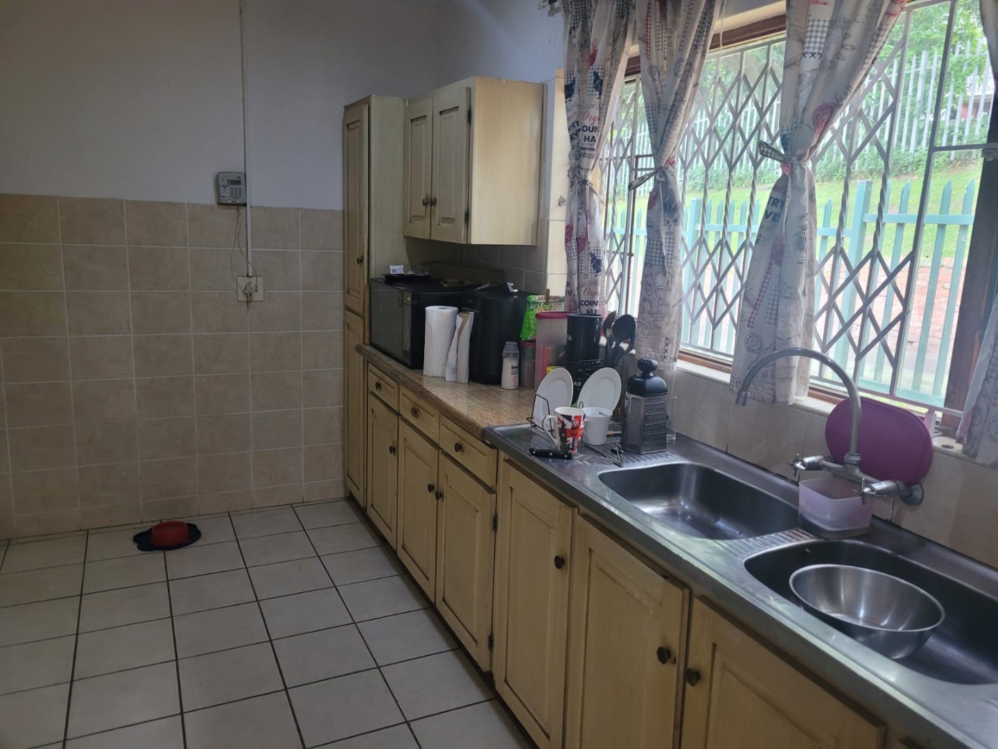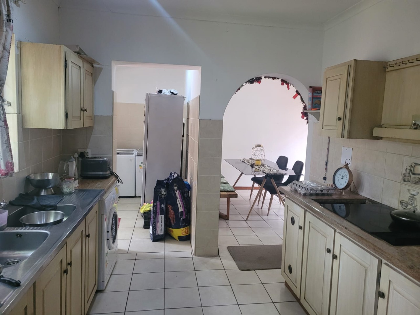 Discover this inviting 3-bedroom, 2-bathroom residence nestled in the established Queensburgh suburb of Northdene. Boasting a generous 1000 sqm erf, this property offers a blend of comfortable living and outdoor appeal. The charming covered front porch, featuring unique arched openings and decorative twisted columns, provides a welcoming entrance and enhances the home's kerb appeal. Mature trees and lush greenery frame the property, creating a serene and private atmosphere. Step inside to an interior designed for practical living. The home features an open layout with tiled flooring throughout, ensuring durability and easy maintenance. Architectural character is evident in the arched doorways, connecting various living spaces seamlessly. The lounge area is equipped with air conditioning for comfort and showcases a modern wood-paneled accent wall, providing a warm and inviting ambiance. An additional living space boasts a stylish stone-cladded accent wall, perfect for an entertainment setup. The functional kitchen offers ample counter space, a double sink, and includes an integrated hob and built-in oven, catering to everyday culinary needs. Cream-colored cabinetry and tiled surfaces ensure practicality. Adjacent to the kitchen, the dining area provides a comfortable space for meals, featuring a modern dining table and seating. The three well-proportioned bedrooms are complemented by two bathrooms, one of which is an ensuite, offering convenience and privacy. Outside, the property truly shines with its verdant garden, complete with mature trees, manicured shrubs, and a grassy lawn, ideal for relaxation or family activities. The presence of staff quarters and a flatlet offers versatile options for extended family or potential rental income. Security is enhanced by an access gate and security gates on windows, providing peace of mind. With a double garage and a driveway, parking is ample. Pets are welcome, making this a perfect family home. Located in Northdene, Queensburgh, this property offers suburban tranquility with convenient access to local amenities and transport routes. Key Features: * 3 Bedrooms, 2 Bathrooms (1 En-suite) * 1 Lounge, 1 Dining Room * Double Garage * 1000 sqm Erf Size * Charming Arched Porch * Air Conditioning * Staff Quarters * Flatlet Potential * Access Gate & Security Gates * Pet-Friendly Garden