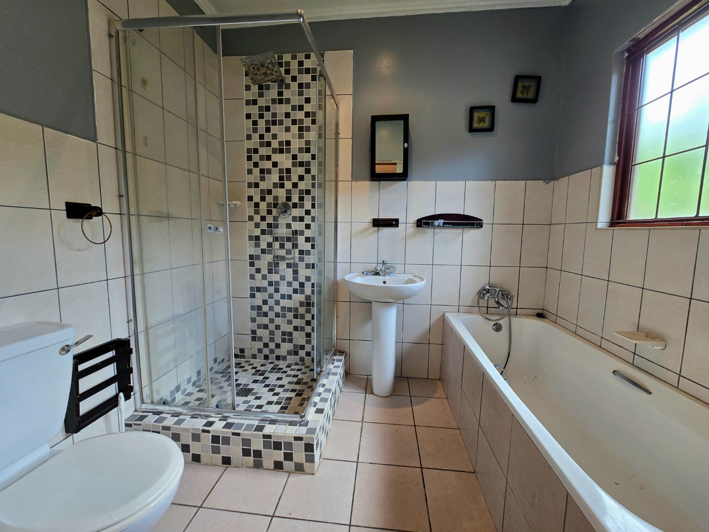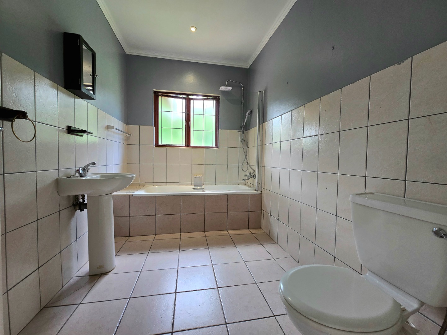 This home boasts three comfortable bedrooms, each fitted with built-in wardrobes to keep things tidy. You'll appreciate the tiled or laminate flooring, and some rooms even have air conditioning units and ceiling fans for those warmer days. With two bathrooms, including one ensuite, getting ready in the mornings will be a lot smoother. The bathrooms are practical, offering a bathtub with an overhead shower, a pedestal sink, and natural light from a window.