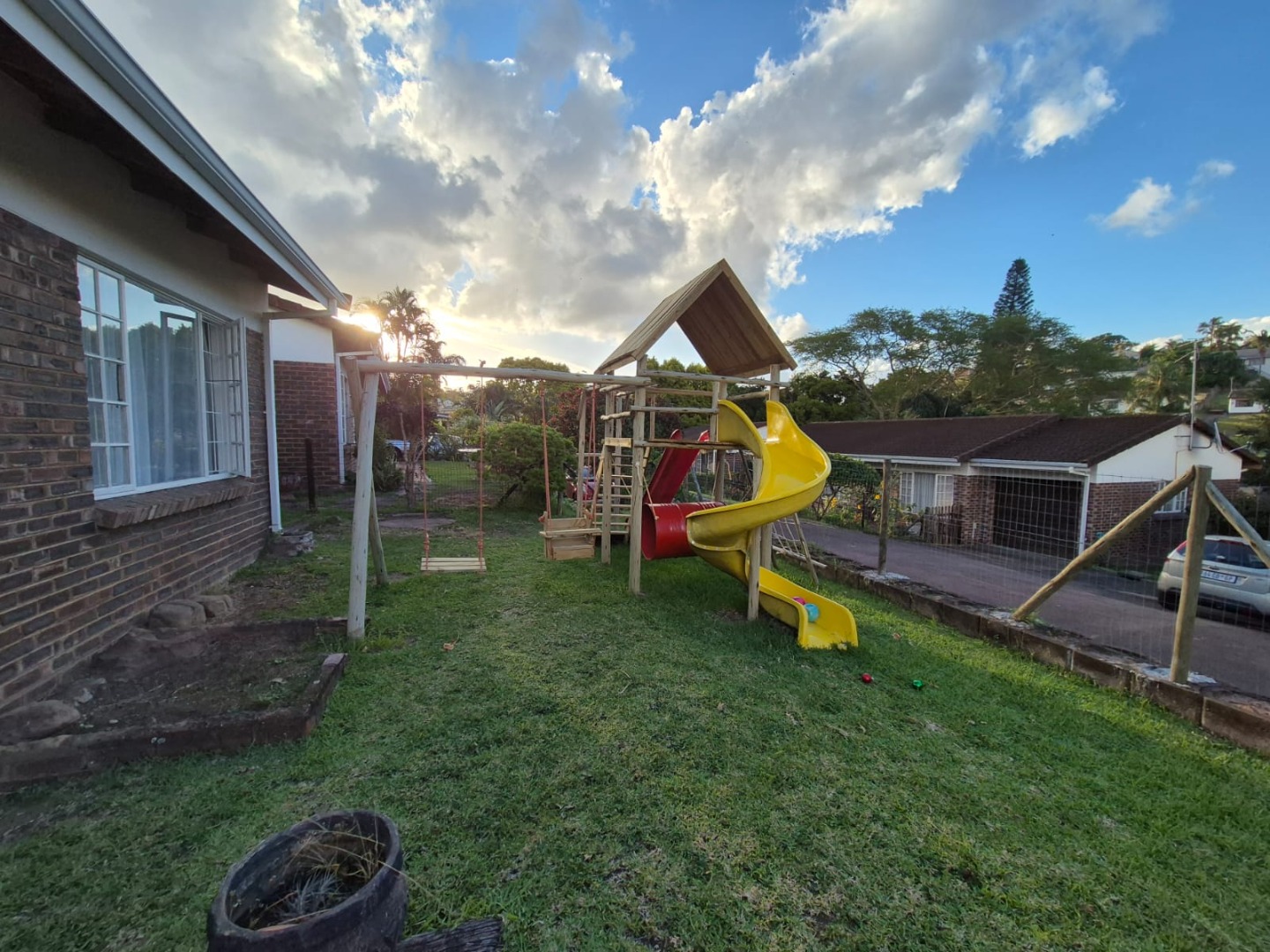Step outside to a lovely, level, fully fenced garden where children can enjoy the jungle gym in a secure environment. The backyard is perfect for entertaining, boasting a large awning and a built-in braai area for year-round gatherings. A JoJo tank is conveniently plumbed into the main water line, and the levies include 17kl of water per month, adding excellent value.