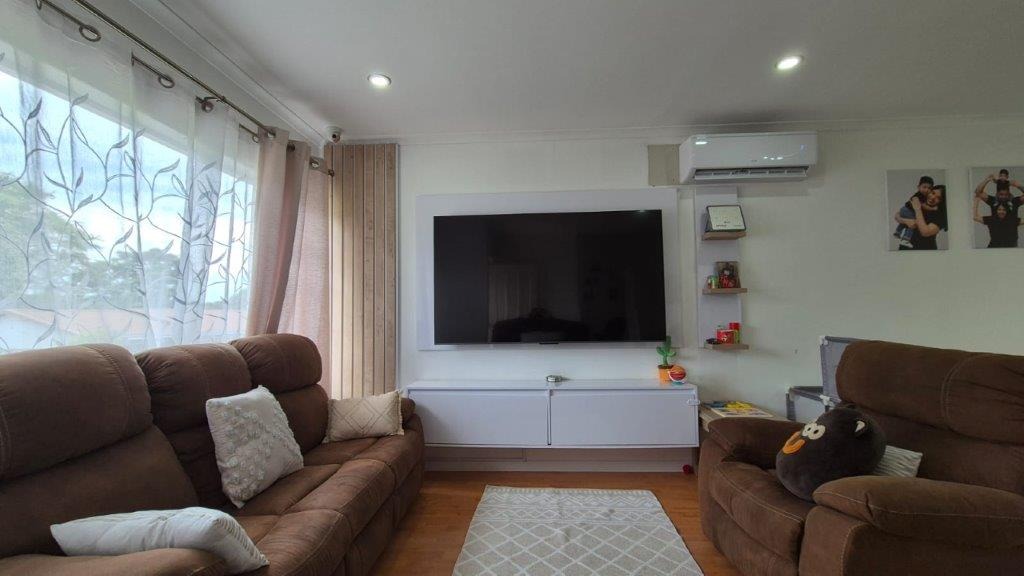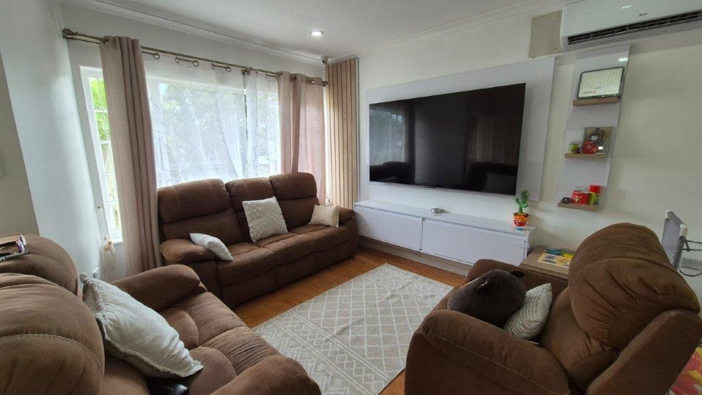 This beautifully presented, freestanding 3-bedroom garden unit offers modern, comfortable living in a safe and sought-after pet-friendly complex. The home welcomes you into a spacious open-plan lounge and dining area, cooled by a powerful air-conditioner that services the entire living space and kitchen. The contemporary kitchen is a standout feature, fitted with sleek quartz countertops, an oven and hob, ample cabinetry, and stylish finishes throughout. A large built-in TV unit adds a practical and elegant touch to the living area.