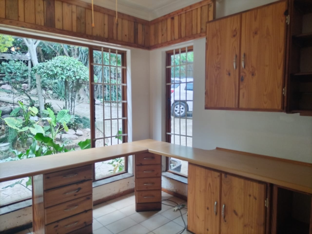 Tucked away at the end of a peaceful cul-de-sac, this versatile family home offers privacy, space, and a true connection to nature. Surrounded by lush greenery and bordering a nature conservation area, the property enjoys a serene atmosphere filled with birdlife and calm. From the moment you enter the gate and make your way down the paved driveway, you are welcomed by a sense of peace, ample parking, and a mature, beautifully established garden that wraps around the home.