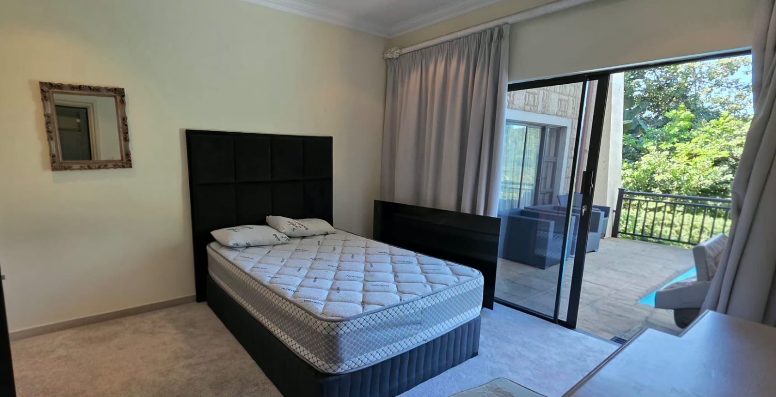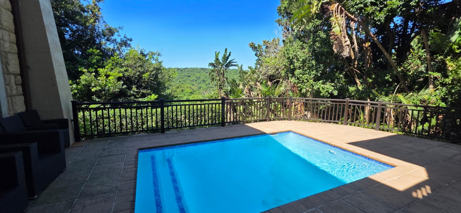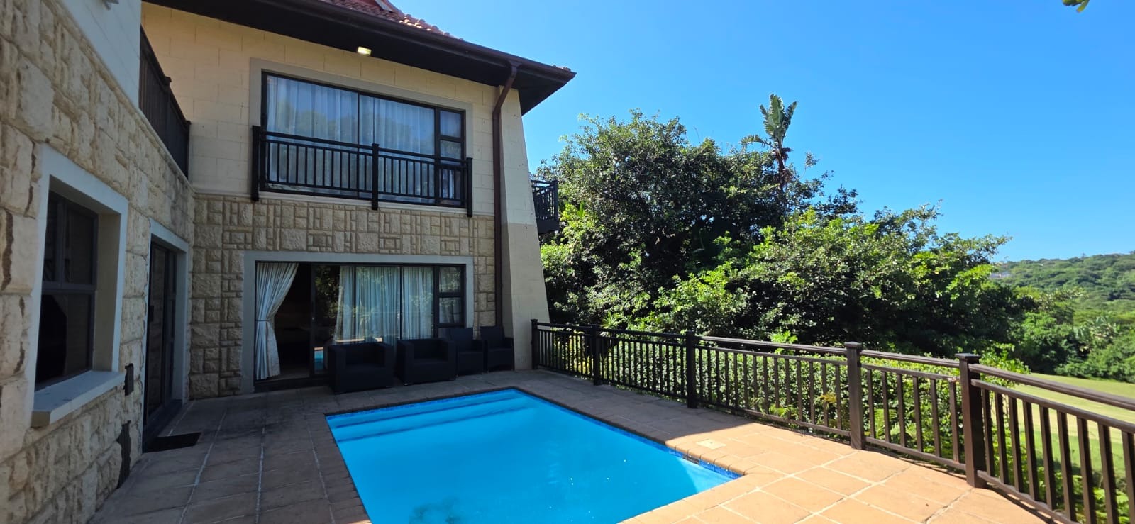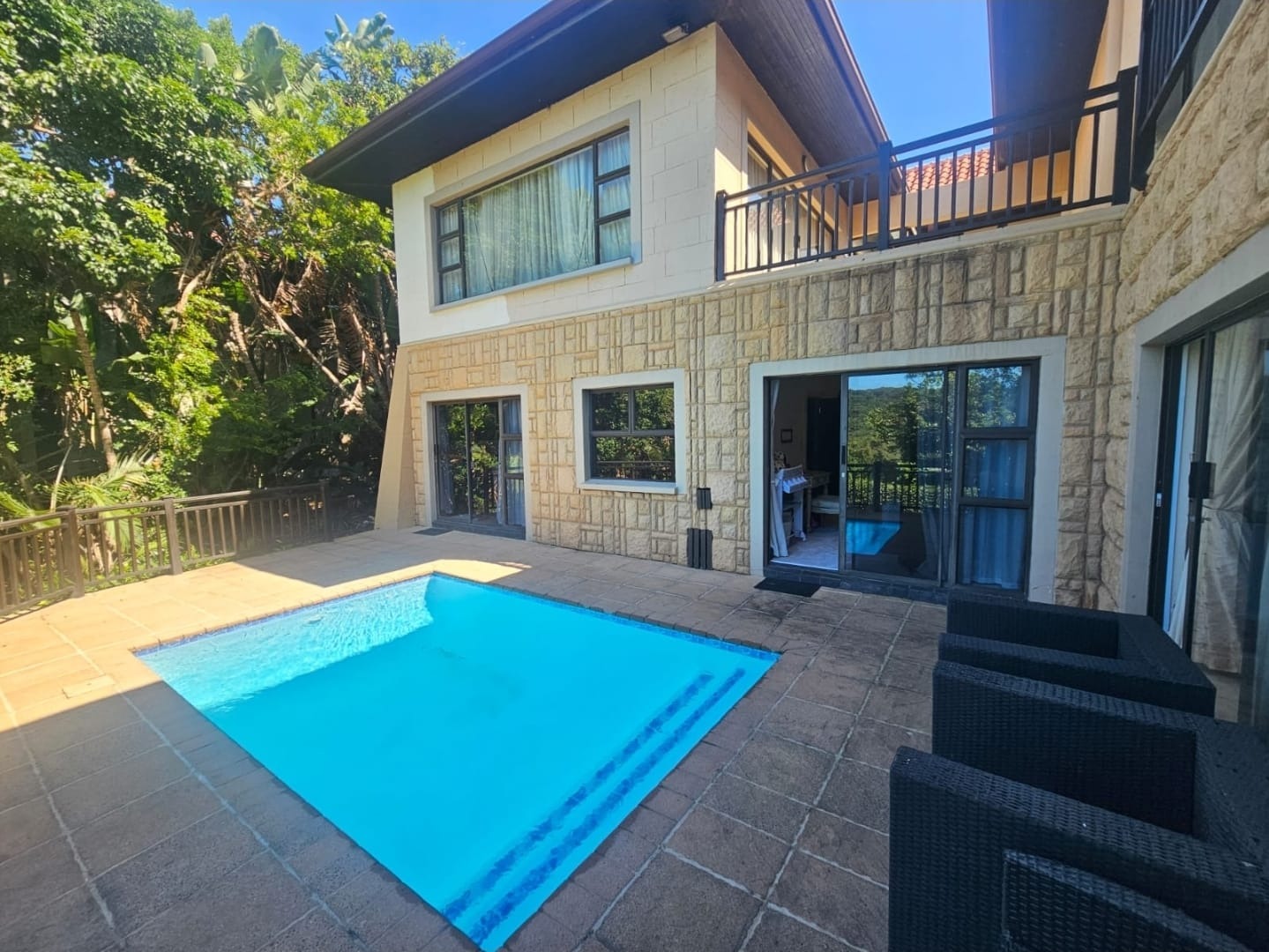 Step outside onto a spacious patio that overlooks the private pool—perfect for hosting friends or enjoying laid-back afternoons outdoors.