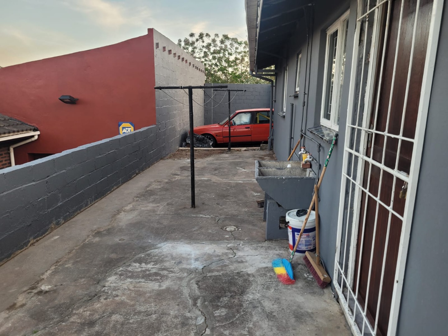 Security is a key feature, with a neatly painted exterior, a secure gated entrance, and a robust perimeter wall. Security bars are visible on windows, enhancing peace of mind. The property provides ample off-street parking for up to four vehicles behind the secure gate, ensuring convenience for residents and guests. This home is well-suited for families or professionals seeking a secure and functional living space in a residential setting.