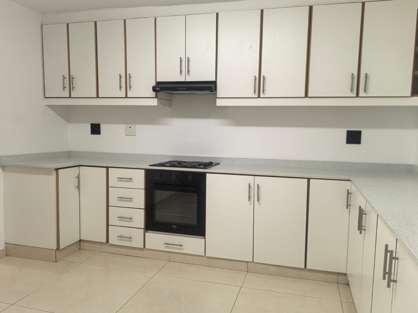 Discover this inviting 3-bedroom, 1-bathroom rental home in Umhlatuzana, Chatsworth. The residence features a modern kitchen equipped with white cabinetry, a built-in oven, gas hob, and double sink. Enjoy a comfortable lounge area and practical tiled flooring throughout. Outdoors, a private swimming pool area, secured by high walls and an electric fence, offers a secluded retreat. Additional security features include burglar bars and security gates. This unfurnished property also provides two parking spaces and ample built-in storage, ideal for a family or professionals seeking a well-appointed home in a suburban setting.