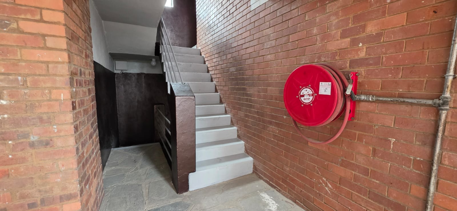 A Flat in a Block in Jacobs. The flat has a 1 and a half bedrooms, a lounge, a dinning room area, a big kitchen which does not have a stove.