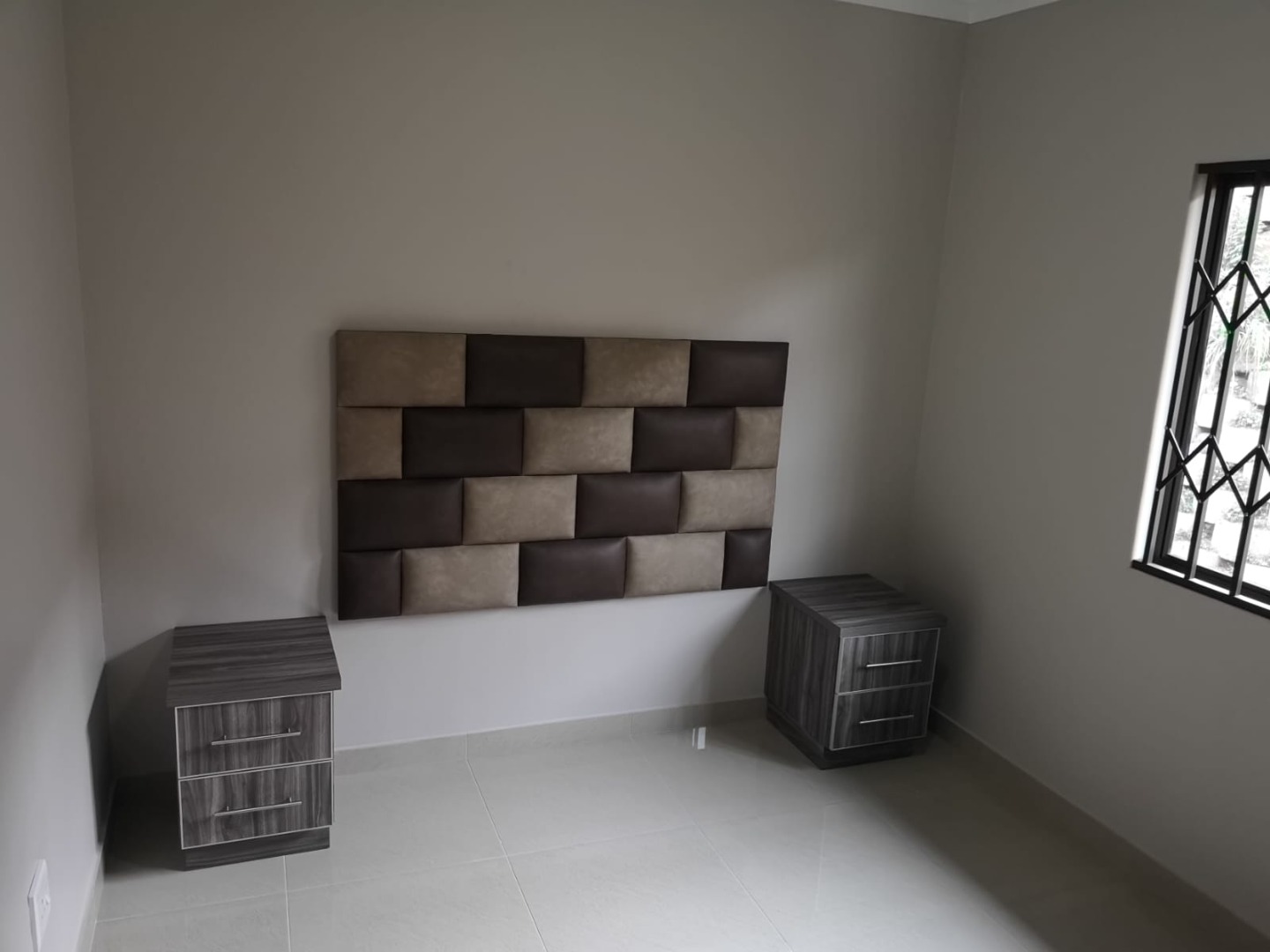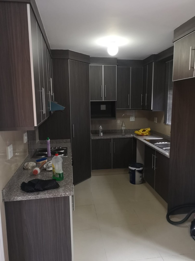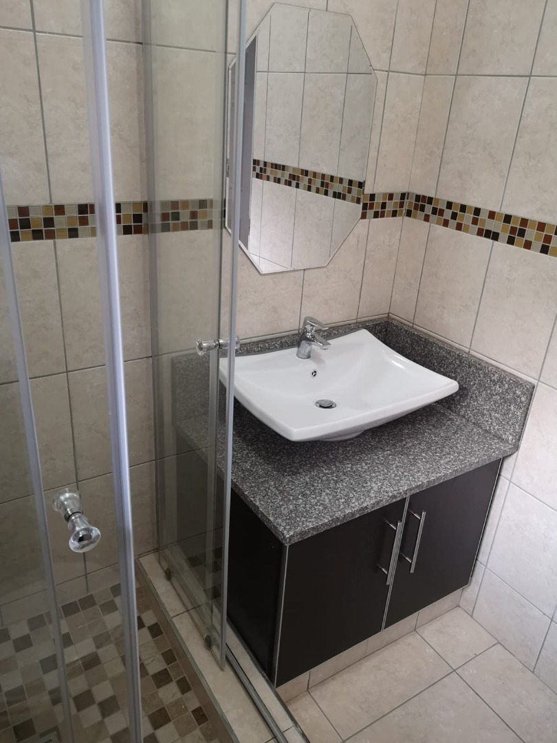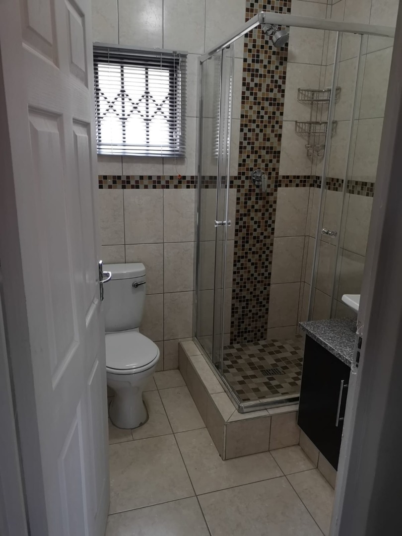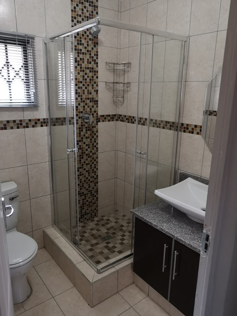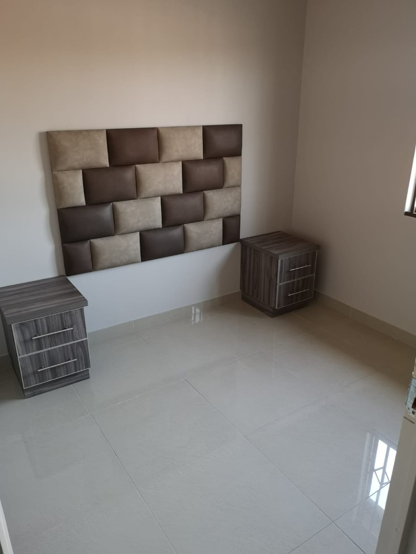 3 Bedrooms with built in cupboards, headboards, pedestal, 1 bathroom with shower, toilet and wash basin.