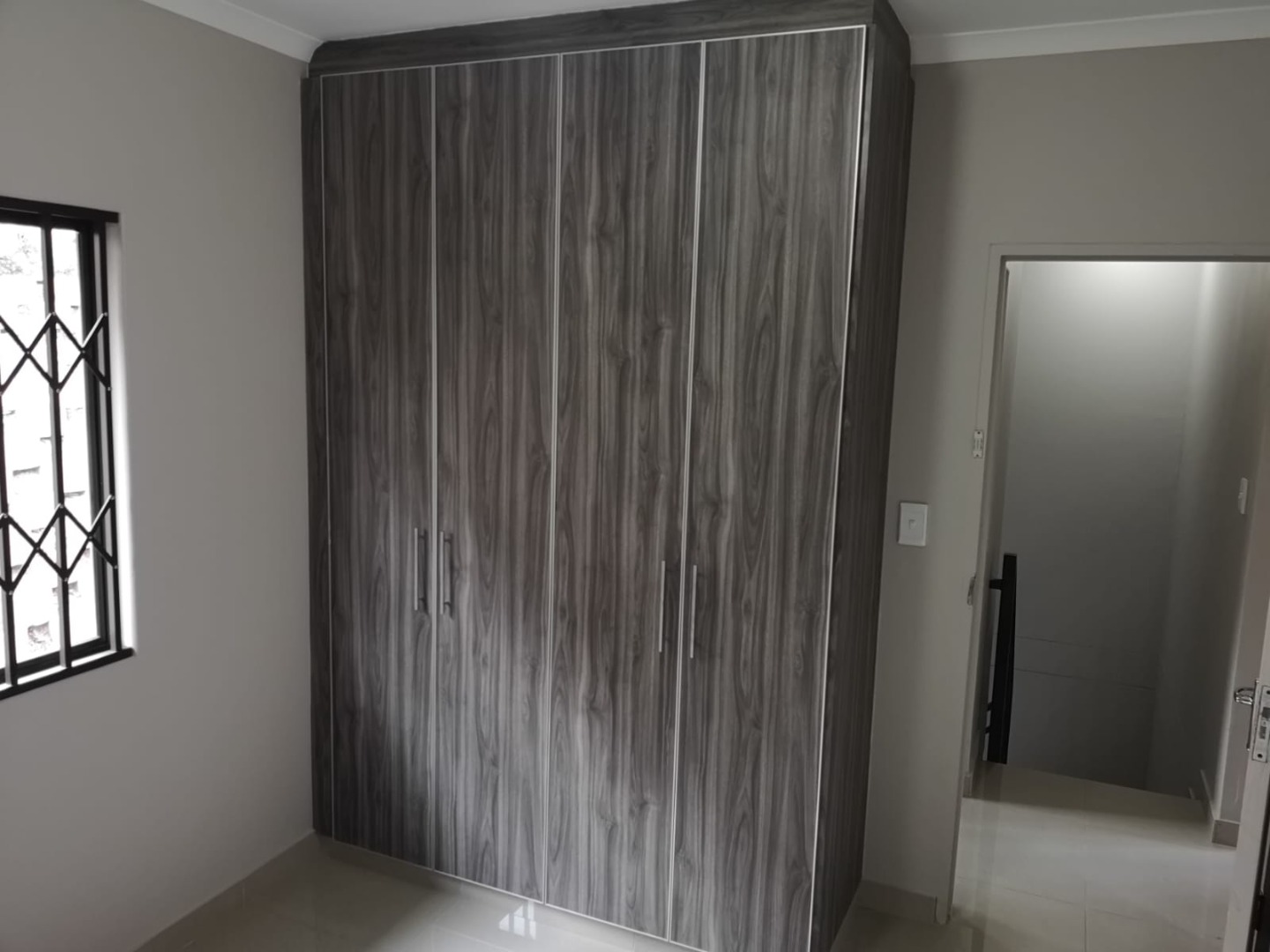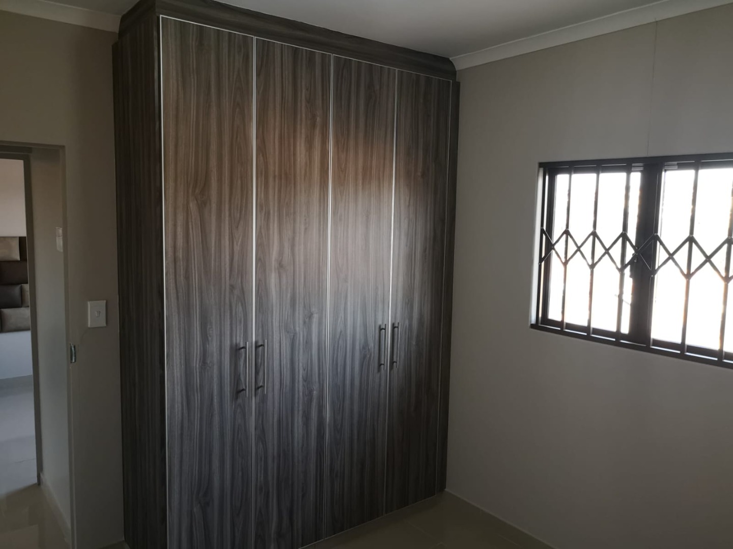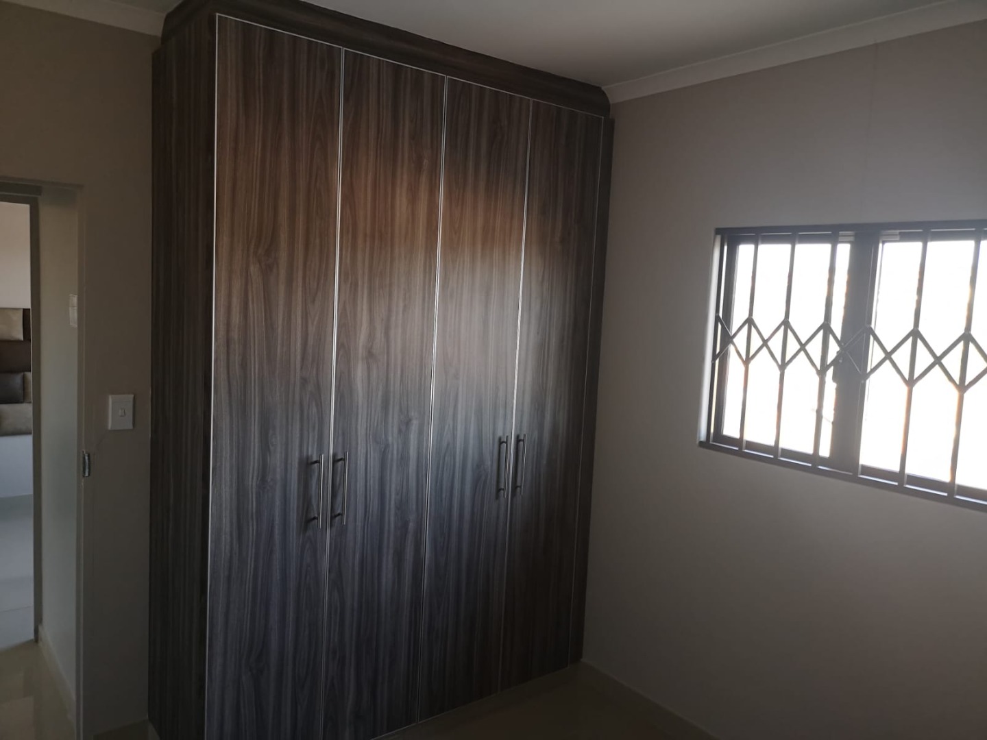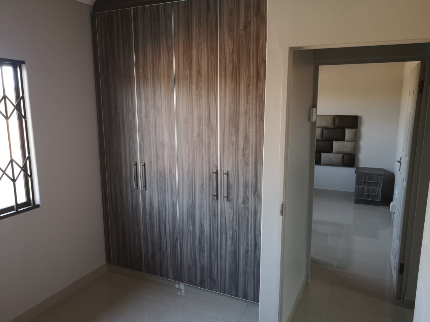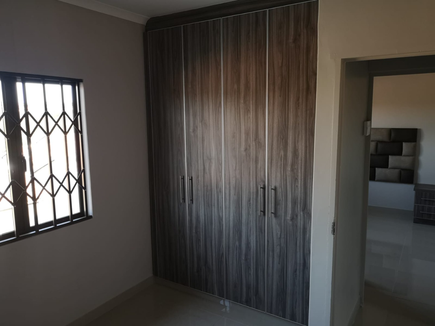 3 Bedrooms with built in cupboards, headboards, pedestal, 1 bathroom with shower, toilet and wash basin.
