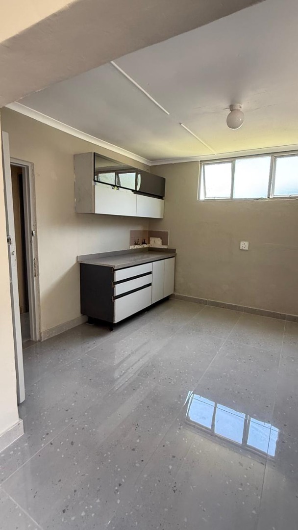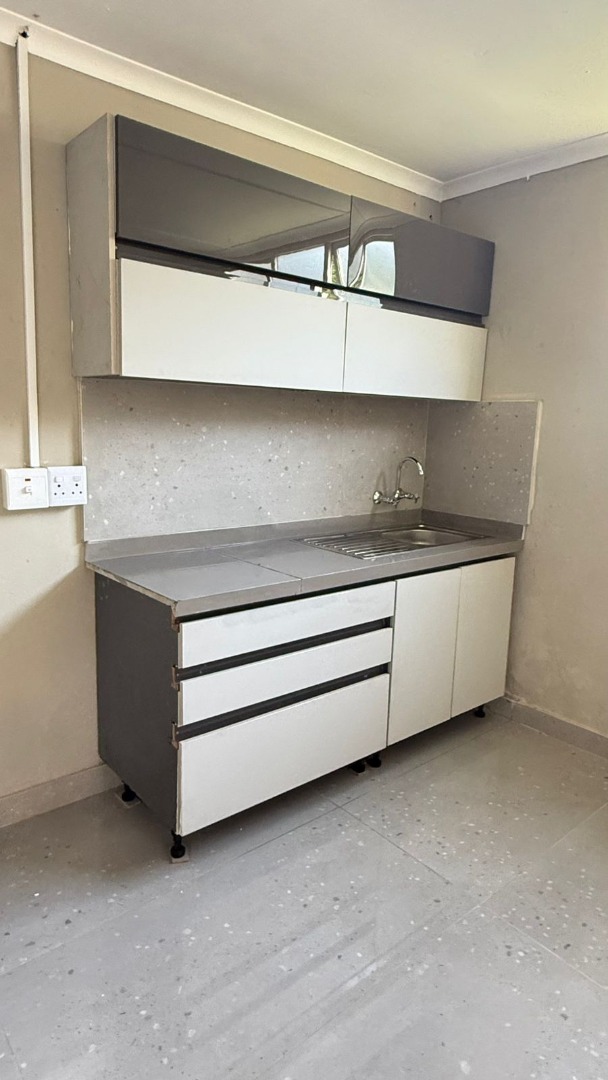 This modern 1-bedroom, 1-bathroom rental unit in Escombe, Queensburgh, offers comfortable living. The interior features contemporary grey speckled floor tiles and freshly painted neutral walls throughout the lounge and bedroom. The compact kitchenette boasts stylish two-tone cabinetry, a grey speckled countertop with an integrated sink, and ample natural light from multiple windows. A standalone wardrobe is included in the bedroom, providing convenient storage. This unfurnished unit is ideal for a single professional or couple seeking a lock-up-and-go lifestyle. One dedicated parking bay is available. Located in the suburban area of Escombe, this property provides a practical and well-maintained space. Key Features: * 1 Bedroom, 1 Bathroom * Modern Kitchenette * Tiled Flooring * Neutral Walls * 1 Parking Bay * Standalone Wardrobe