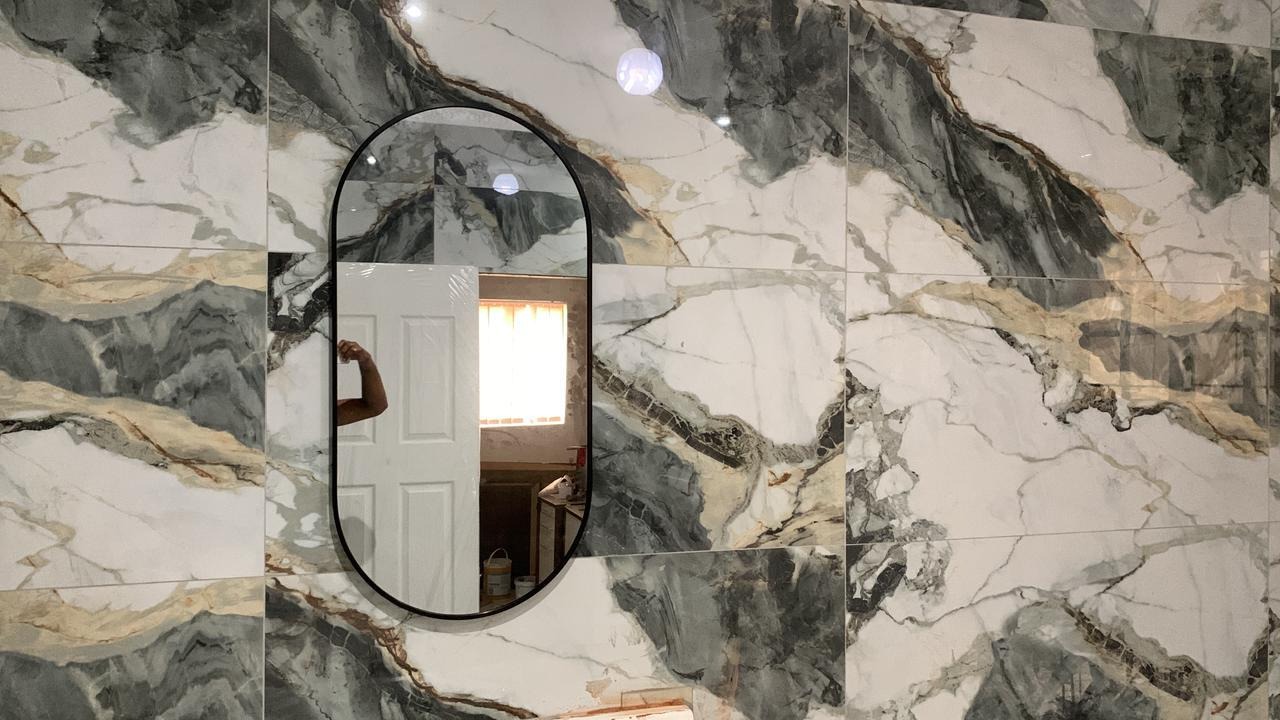 The three bedrooms are all generously sized, continuing the clean tiled flooring throughout. You'll find plenty of storage with built-in cupboards, and one room even comes with an air conditioning unit to keep you cool on those warmer days. The bathrooms have been updated too, featuring stylish marble-look tiles that add a touch of modern elegance.