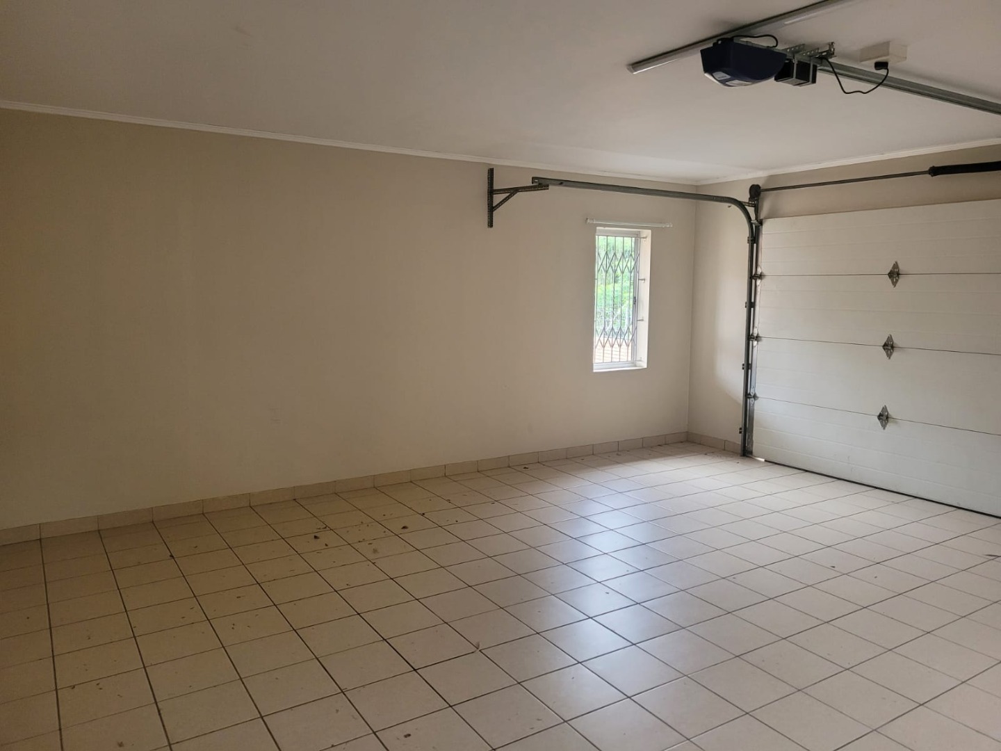 You'll find a convenient double garage with an automated door and tiled floor, perfect for secure parking. Enjoy the outdoors on your private patio. This unfurnished home offers a low-maintenance face-brick exterior and is designed for a secure, lock-up-and-go lifestyle. For your peace of mind, it includes an alarm system, burglar bars on windows, and security gates on doors.