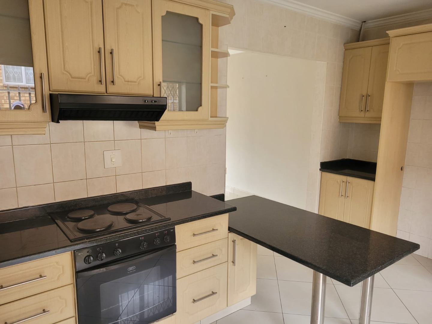 Discover this inviting 3-bedroom, 2-bathroom home for rent in Malvern, Queensburgh. It features a comfortable lounge and a practical kitchen, complete with light wood cabinetry, granite-look countertops, an integrated electric hob and oven, plus a handy breakfast bar and double sink. The entire home boasts easy-to-maintain tiled flooring and neutral walls, providing a versatile canvas for your furnishings.