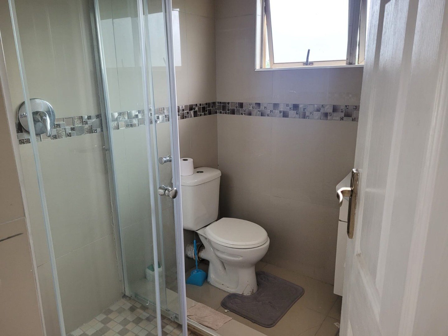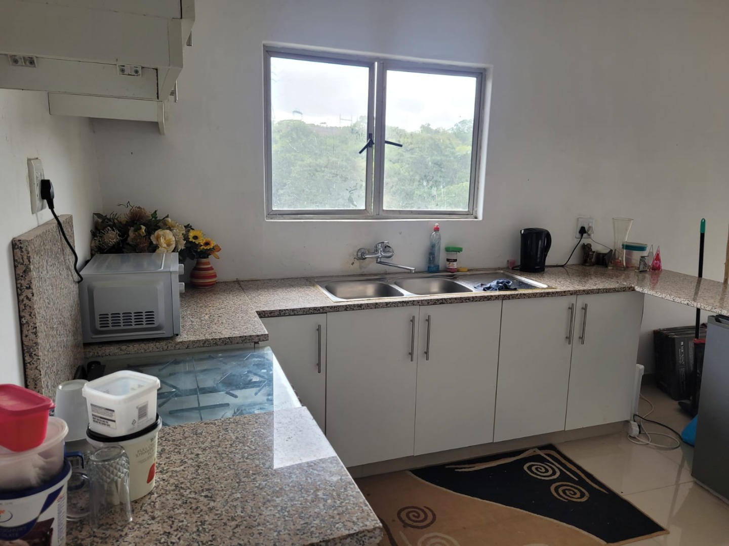 Discover this inviting 1-bedroom, 1-bathroom rental unit in Northdene, Queensburgh. The open-plan living area features tiled flooring and white walls, leading to a private balcony with scenic mountain views. The modern kitchenette boasts granite countertops, a built-in hob, and white cabinetry, complemented by a separate dining space. Ample storage is provided by built-in cabinets, while the bathroom offers a walk-in shower. Enjoy abundant natural light throughout. Security is enhanced with window bars. Solar geyser with pre paid electricity and water included. The property includes a paved driveway and lush natural surroundings, offering a tranquil living experience.